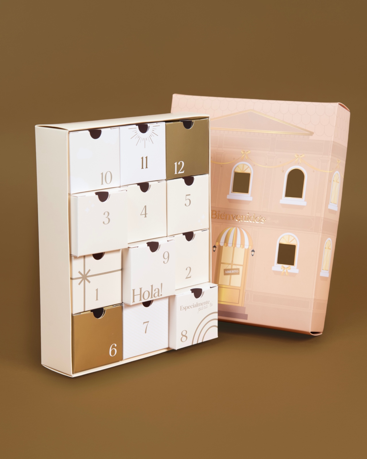 caja de adviento pequeña bienvenidos 18x23x5cm $13.990c/u paq x 12 unds